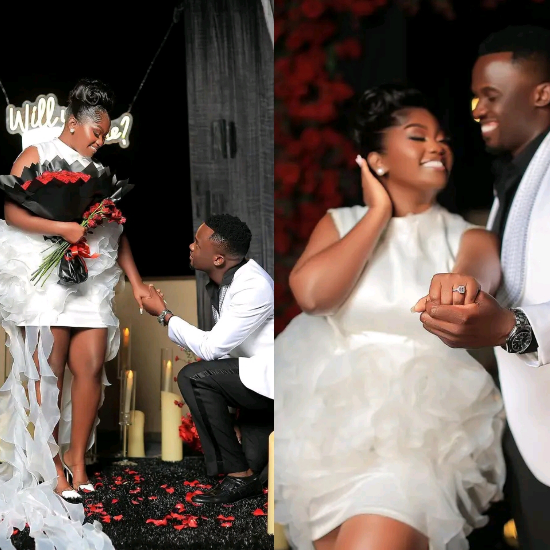 The engagement, which took place on Thursday evening, was a beautiful, invite-only affair attended by a circle of close friends including Caroline Marcah, Spice Diana, Kais Divo, and Florence Nampijja, among others.